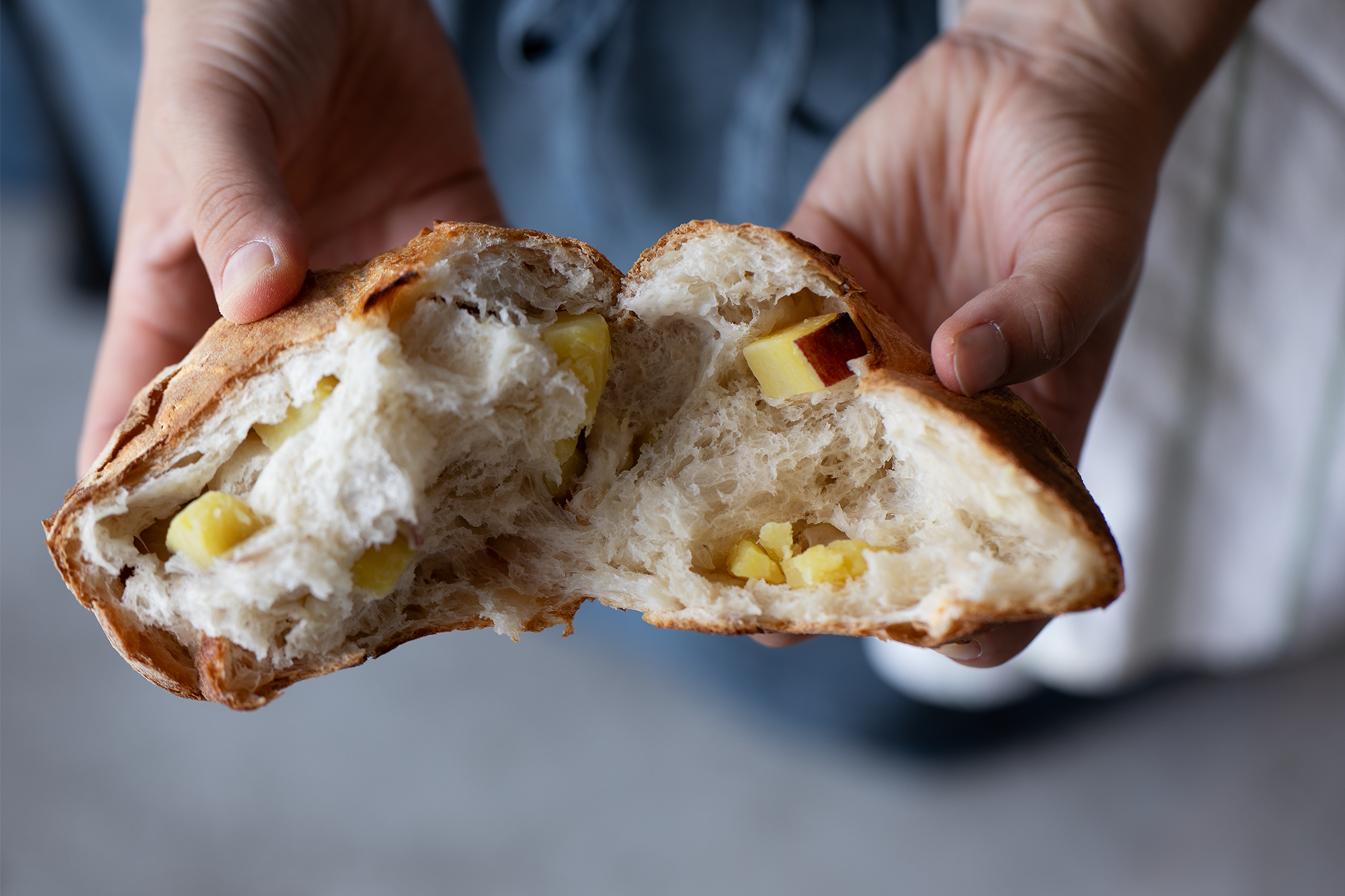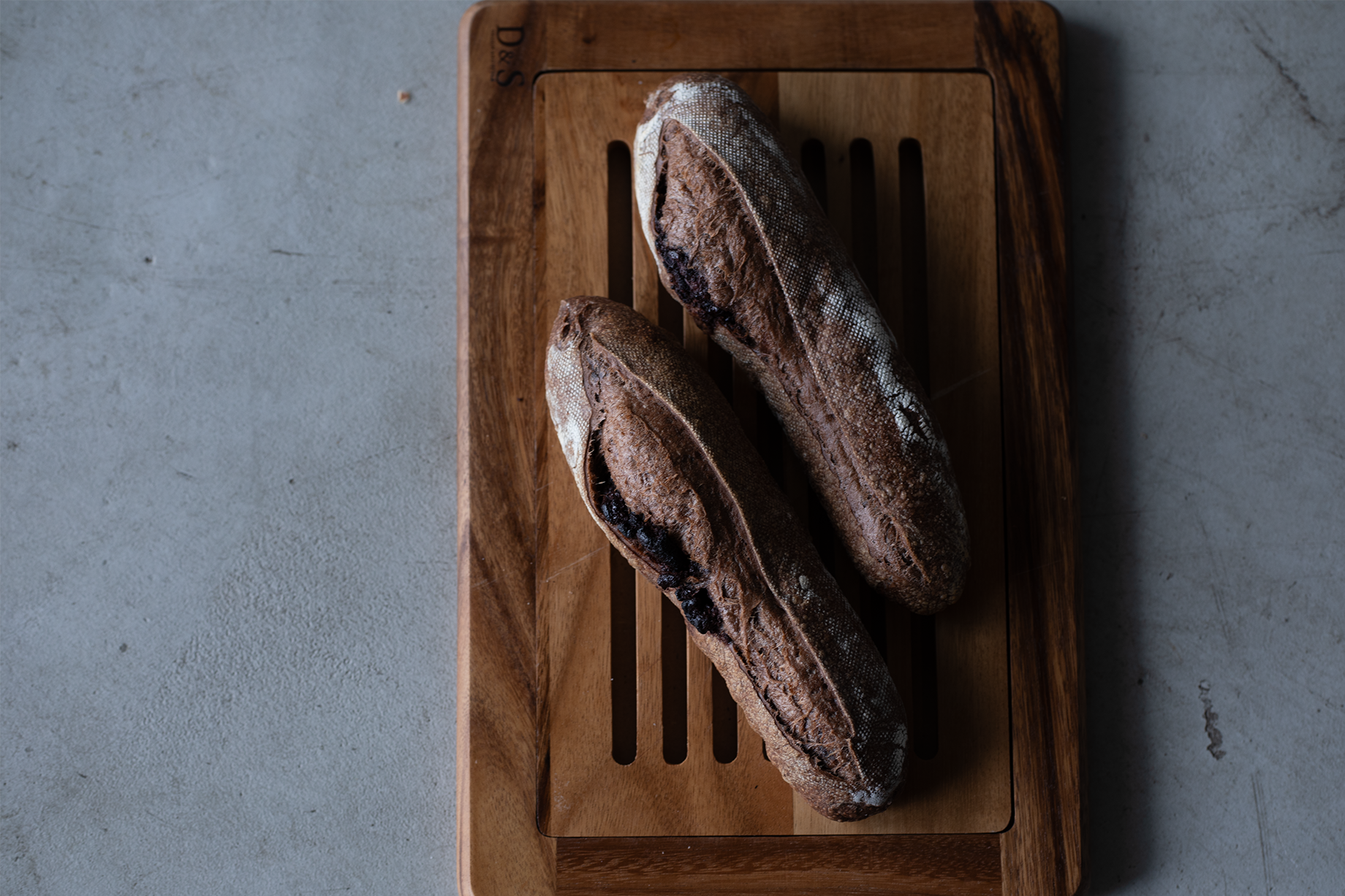 工場内の厨房で焼いた自家製パン。地元で採れた野菜や、ミードで使用した果物の皮などを使って、食材の循環を大切にパン作りをしています。