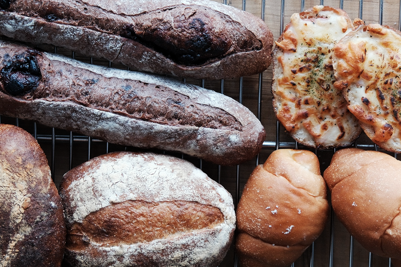 パンは週1回、金曜日に焼きたてをご用意しています。ハード系のパンは12時に焼き上がります。